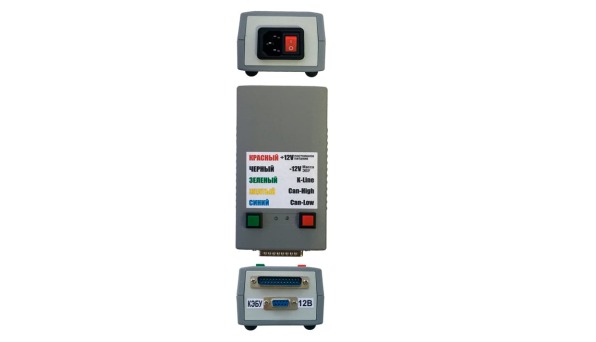 Прибор представляет собой единый коммуникационный интерфейс, обеспечивающий стабилизированное питание ЭБУ на все время программирования, защиту цепей ЭБУ и адаптера от переполюсовки и неверного подключения, а также предоставлюящий конечному пользователю все необходимые инструменты для подключения непосредственно к разъему ЭБУ.