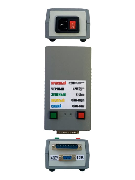 Прибор представляет собой единый коммуникационный интерфейс, обеспечивающий стабилизированное питание ЭБУ на все время программирования, защиту цепей ЭБУ и адаптера от переполюсовки и неверного подключения, а также предоставлюящий конечному пользователю все необходимые инструменты для подключения непосредственно к разъему ЭБУ.