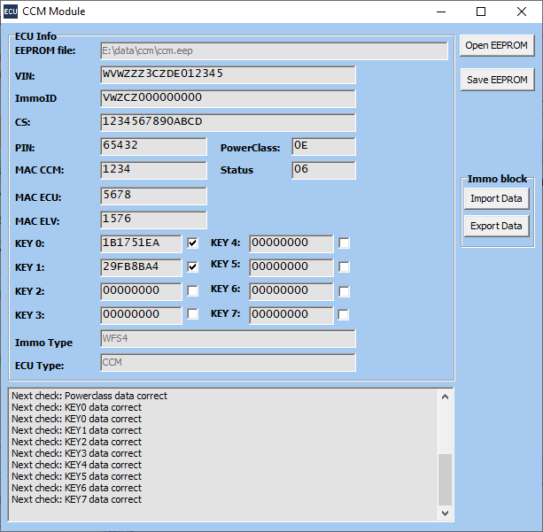 - Редактирование всех данных иммо, находящихся в еепроме. Для блоков с криптомодулем SHE/HSM на кристалле не возможно редактирование CS и полный перенос данных иммо